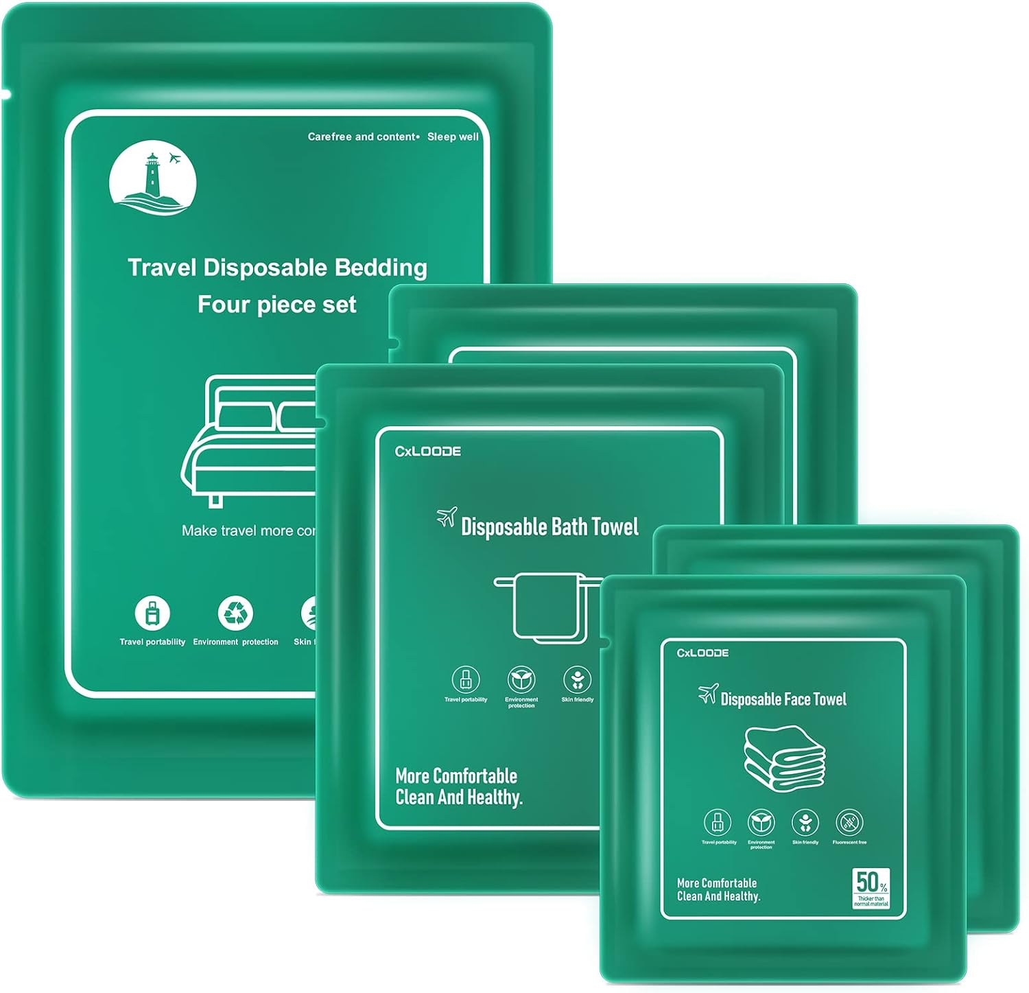 8 PCS Disposable Bed Sheets for Hotel, Travelling Essentials with 2 Disposable Bath Towels 2 Disposable Face Towels and Disposable Bed Sheets, Disposable Washcloths for Travel Hotel Essentials